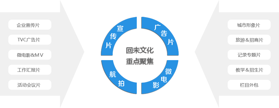 河南回未文化傳播有限公司-兼具創新力與執行力的視頻影像傳播專家,以影視廣告為核心業務,提供企業宣傳片、專題片、廣告片、微電影、航拍的策劃拍攝制作一站式服務。我們立足于鄭州,以精準策劃、精心拍攝、精致后期,精誠服務于廣大中原企業。致力于成為懂企業的影像合作伙伴,用影像為企業創造價值,助力企業發展。